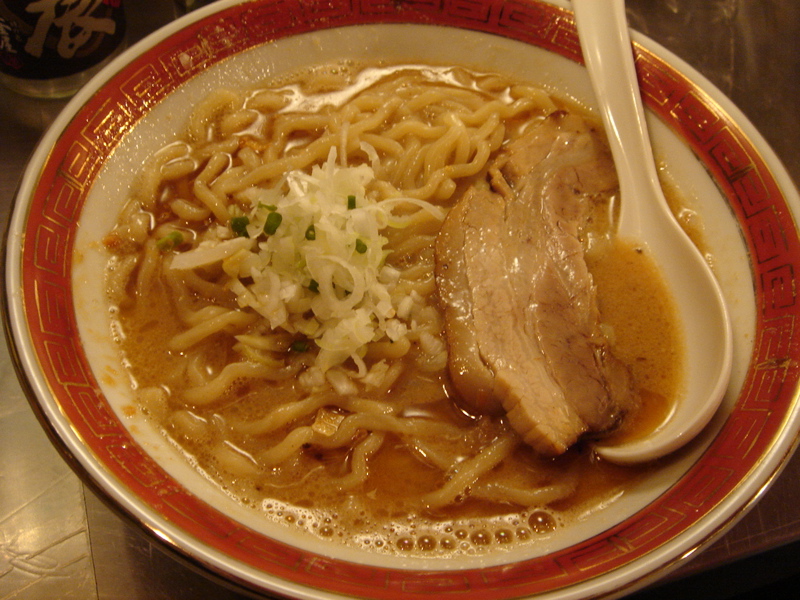 今年404杯目 6/28 凪@渋谷 日替わりラーメン(味噌ラーメン)つい先日、日替わりの味噌ラーメンを食べたばかりなので、超コレクターの私は「焼きラーメン食べたし、今日は酒だけでいいや」なんて思っていたら、この前とは違うという。じゃぁ食べねば、と締めに注文。う〜ん、濃厚豚骨に鰹が効いて、うまいなぁ〜。例によって麺も旨いし、軽めの量が飲み食いした後にはちょうどいい。もうちょい駅から近いと嬉しいんだけど。(じゃないと帰りにタクシーを使ってしまう(^^;)