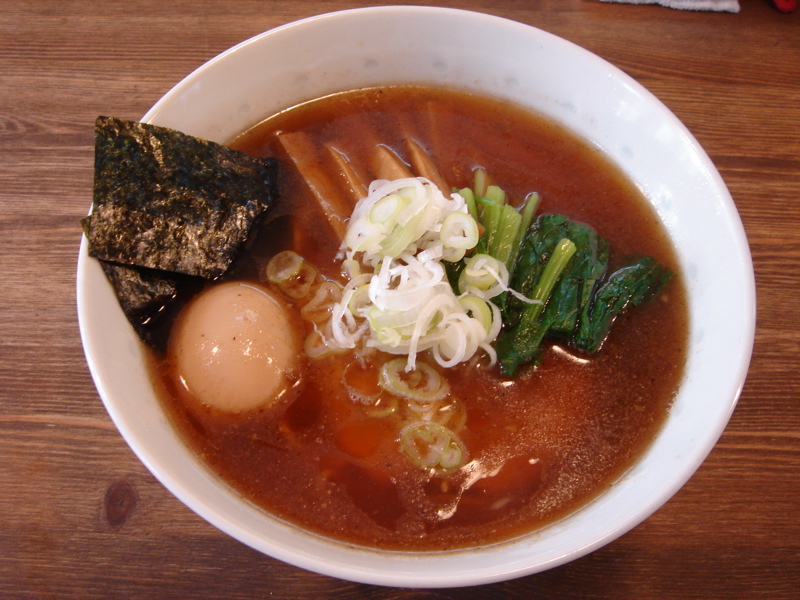 動物系と魚介系のブレンドだと思いますが、いわゆる今流行のありがちなタイプとは違って、個性的な仕上がりになっています。面白いスープでなかなかうまいですねぇ。麺は自家製麺らしいですが、こちらもいい感じ。秋田産の地鶏の味玉もまた独特の味付けでなかなかうまかったです。いい店ですね〜。