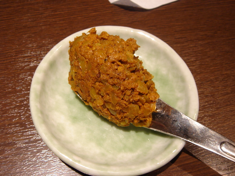 この焦がし味噌とんこつは道玄坂店オープンの際にラーメン王の小林さんがプロデュースしたモノをアレンジしたラーメン。しかも歌舞伎町店限定。具などが変更になっているがそれ以外はだいたい同じ仕様。レンゲに載せて提供していたカレー味の挽肉はスパイシーカレーとしてトッピング150円になっていた。道玄坂店で食べたときにも旨いと思っていたが、やっぱりイケル。プロデュースが素晴らしいのか、作り手が巧いのかはわからないが(^^;、歌舞伎町に行った時には食べて味噌。