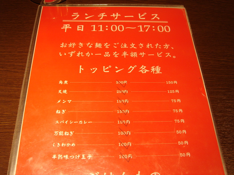 平日の昼に行くとトッピングが半額なので嬉しい。