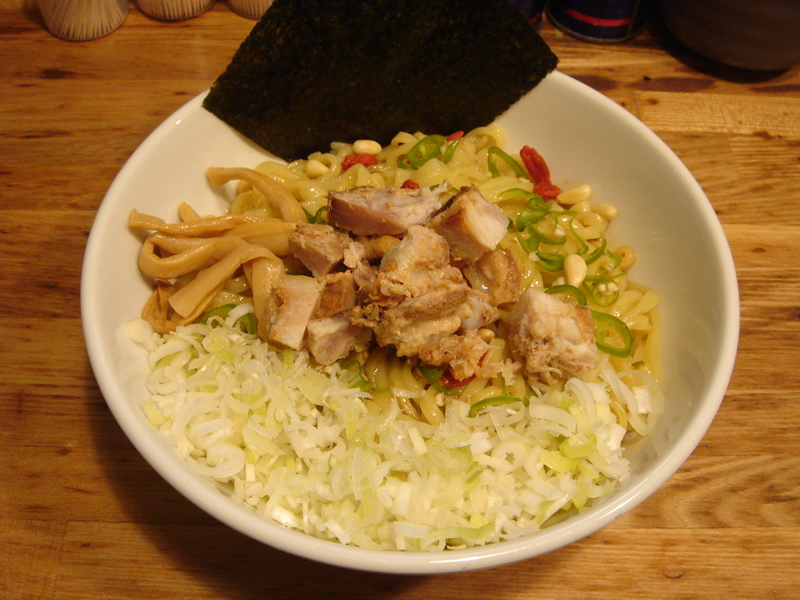 最近出たばかりの新メニュー「油・担々そば」800円は、簡単に言ってしまえば汁無し。あるいは、和え麺、はたまた油そばとも言える。かなり手間がかかったという山椒油を絡めて食べるので結構なシビレ感があり、山椒好きには心地よい。がんこのあのチャーシューをサイコロ状にぶつ切りにしたものが箸休めにたまらない。多めに入ったネギもいい効果を発揮。後半にはラーメンスープが出てくるがそれを丼にかけて食べる(飲む)と四川風がんこスープの出来上がり。さすがにがんこだからか、ちょっとしょっぱかったがそれでも完食完飲。あっ、言い忘れたがこのメニューの麺はもっちりした平太麺。このメニューにあっていてウマイ。ホワイトつけ麺はまもなく止めるらしい。ホワイトラーメンは継続。お店のデータは「ラーメンバンク」をクリック!