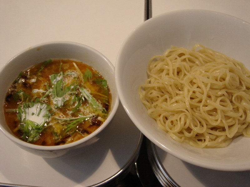 今月の限定「カレーつけ麺」を。繊細なイメージが強かった店だがそんな店主が作るカレーつけ麺に興味があって食べに来てみた。しかも近々テレビで紹介されるとなったら食べるしかないでしょう。ココナッツミルクを使ったカレーは私にはほどよい辛さと甘味でばっちし好み。こういう変化球もいけるのね。今後も楽しみな店主である。お店のデータは「ラーメンバンク」をクリック!