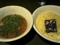 今年630杯目。某テレビ番組で全国一位になり、驚異的な大行列を作った店。ようやく行列が少なくなったようだ。というか並んでないどころか先客4人しかいない。びっくり。夜はメニューがつけそばのみになる。麺の量、大中小が同じ値段らしい。中にしたがそんなに多くはない。小はかなり少ない、と小を注文した女性に店員が言っていた。細麺のつけ麺は麺が絡まるからちょっと食べにくい。でも、つけ汁は濃厚でチャーシューというか、「豚」の使い方が好き。細かくほぐれるのでつけ麺には合う。ただ、スープ割りがないのが残念。ギリギリそのままでも飲める濃さだからいいけど・・・。回転が悪い、というのも解消したみたいで、つけ麺なのにすぐに出てきた。6時に店に入って、6時6分には食べ終えて出てきたのには驚き。