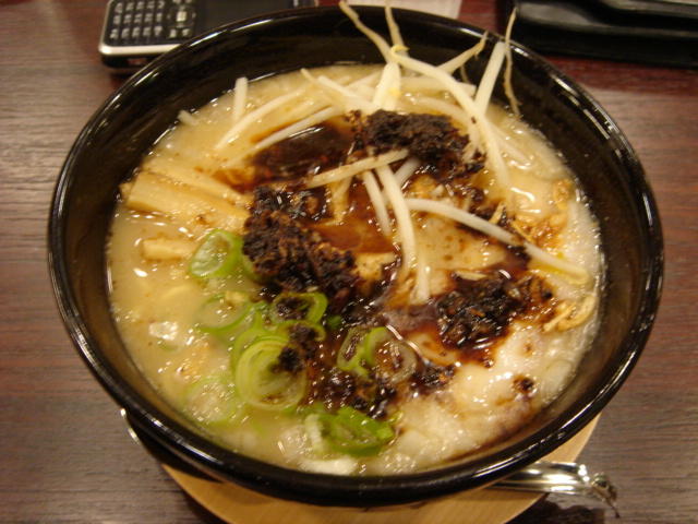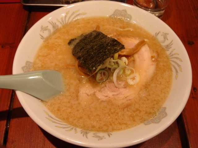 大混雑の土曜の夜、歌舞伎町にやってきた理由は取引先の知り合いがこの店をデザインしたとのことでいわゆる「付き合いラーメン」。味千は何度も食べてるので内装見学くらいの軽い気持ちで食べに行った。今までの味千とは違ってなかなかいい感じの内装。味千拉麺600円を注文。オープン日だからではないのだろうけど、(関係者がいるからでもなく)これまで都内で食べたどの味千よりも旨い。かなり旨味やニンニクも強いが飲んだ後なら十分満足できるレベル。佐野実さんが作るのもラーメンならこういうのもラーメンなのだ、と改めて認識した次第。
