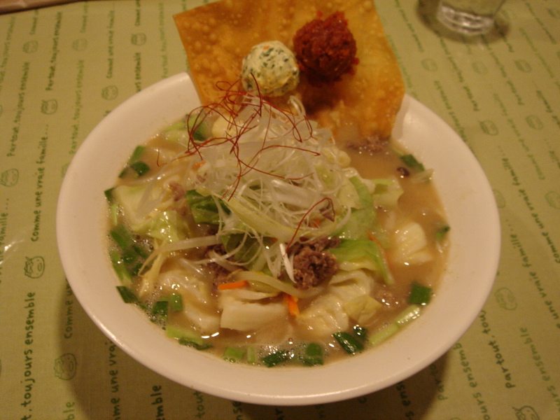 今月の限定「カレーつけ麺」を。繊細なイメージが強かった店だがそんな店主が作るカレーつけ麺に興味があって食べに来てみた。しかも近々テレビで紹介されるとなったら食べるしかないでしょう。ココナッツミルクを使ったカレーは私にはほどよい辛さと甘味でばっちし好み。こういう変化球もいけるのね。今後も楽しみな店主である。