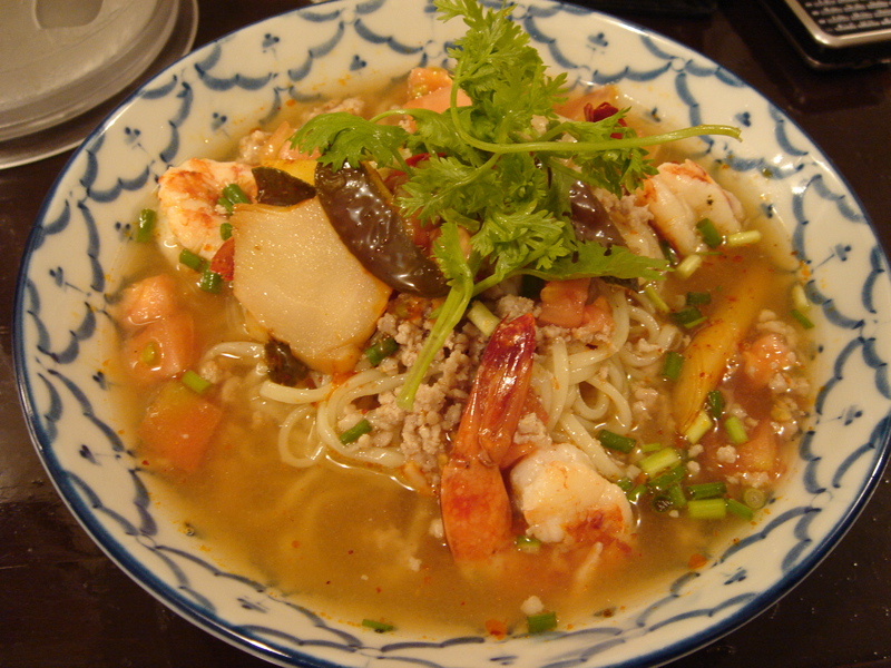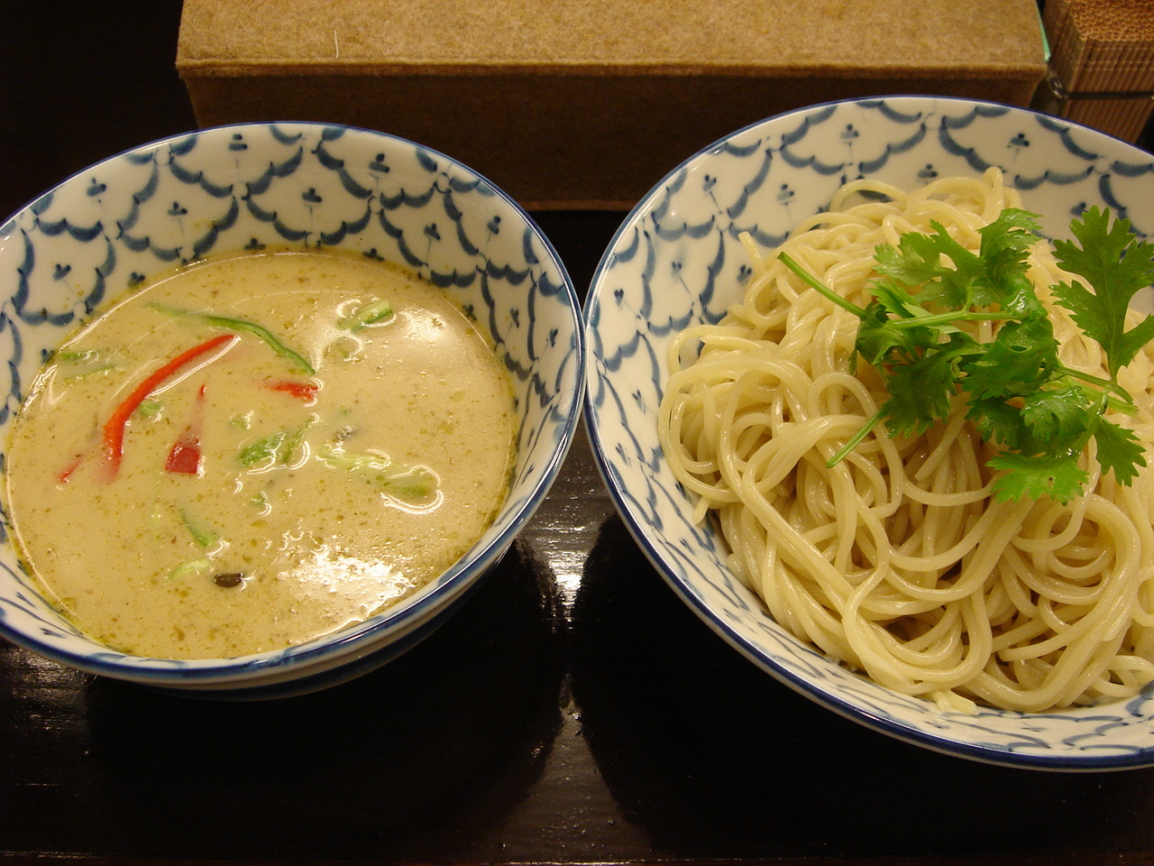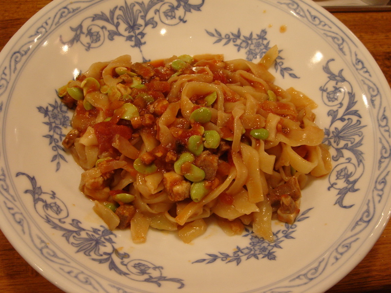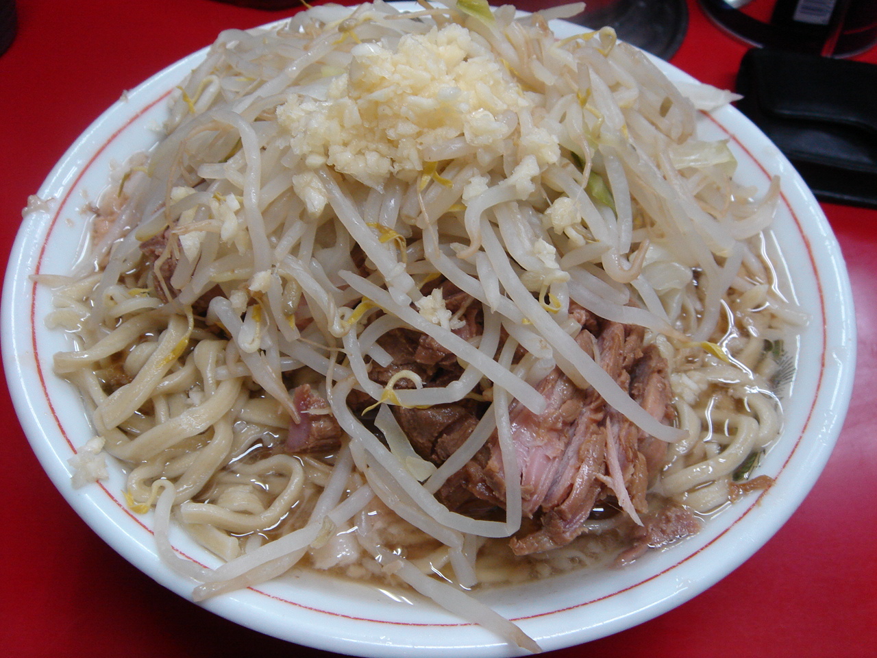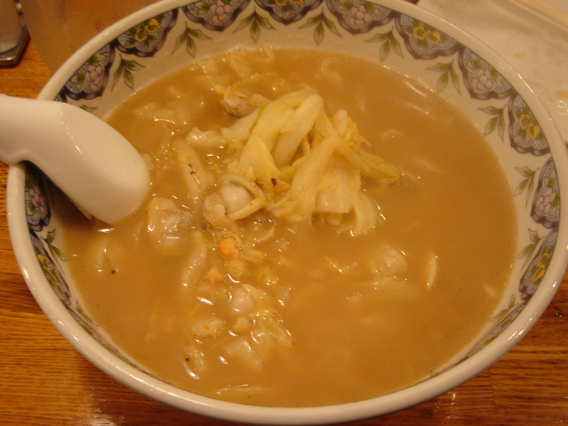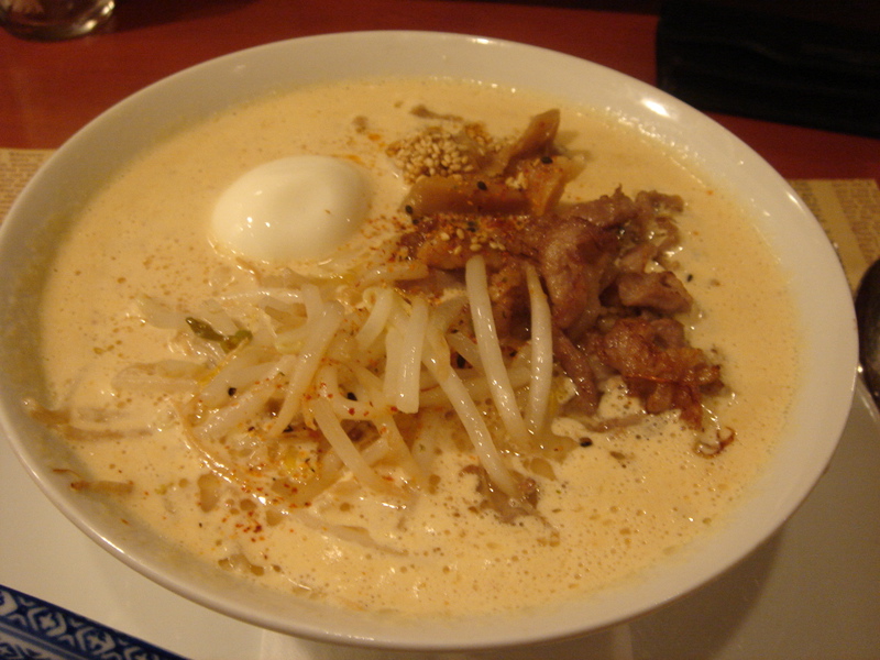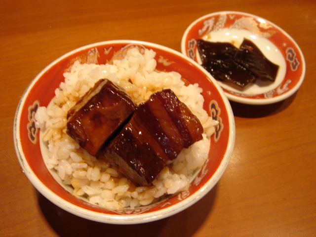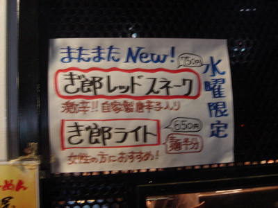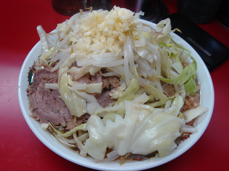 どこかのブログで「華麗なる汁なし」(汁無しのカレー和え麺)にチーズが合う、というのが書いてあって、(忘れてしまってすみません)そりゃ合いそうだ、と思って来てみた。これが予想通りというか予想以上に合う。まずは、何も付いてないあたりの麺をほじくり出して食べる。次にカレーを付けて食べる。次に直前にバーナーで炙ってとろ〜りとさせたチーズ、さらには辛し高菜とチャーシュー合え、卵黄、と混ぜ物が沢山あるのでいろんな変化がある。麺はハーフで十分だと思ったが、やっぱり足りなくなった。(^^;