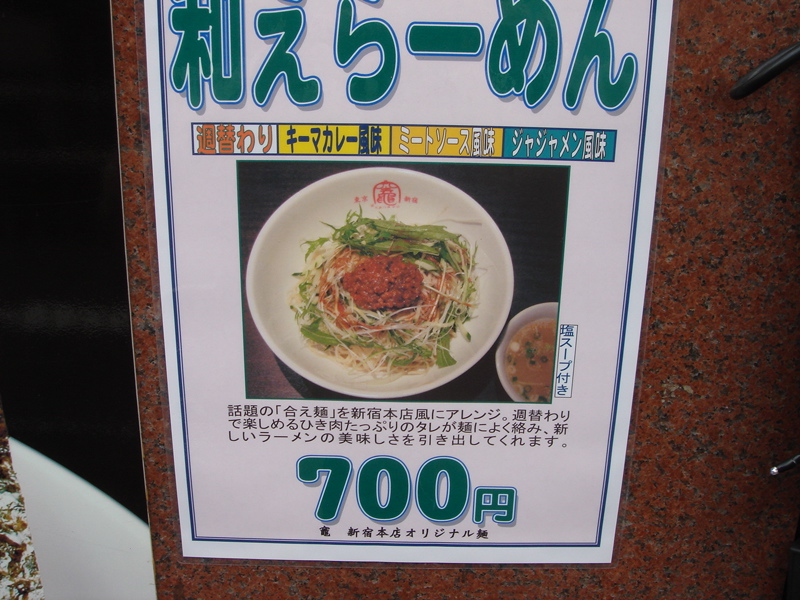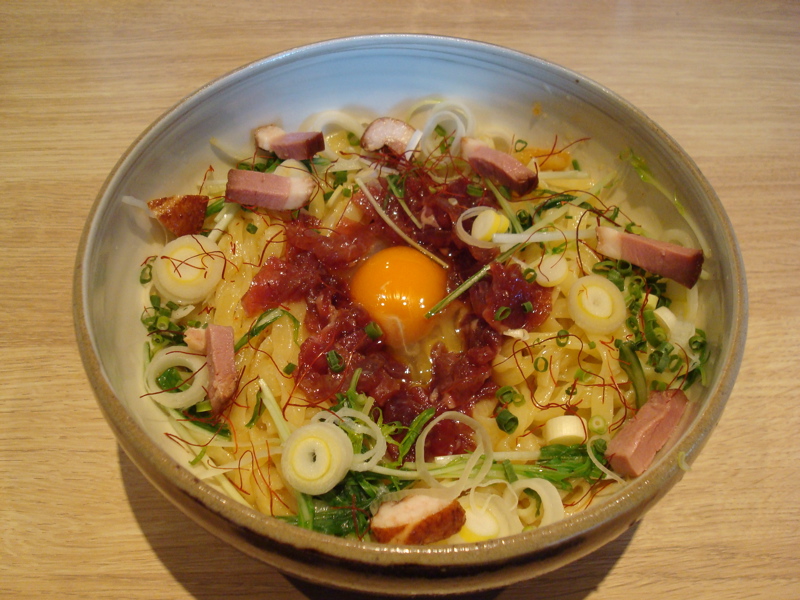 年末のテレビ番組「最強ラーメン伝説」の中で創り上げた創作メニュー「鴨三昧」。番組中では、かんばしくない評価(5人中一人だけが「参った」)だったが、最後に修正を加えて、まずは高田馬場店で発売。その後、中目黒でも発売していたが2/11で発売終了。