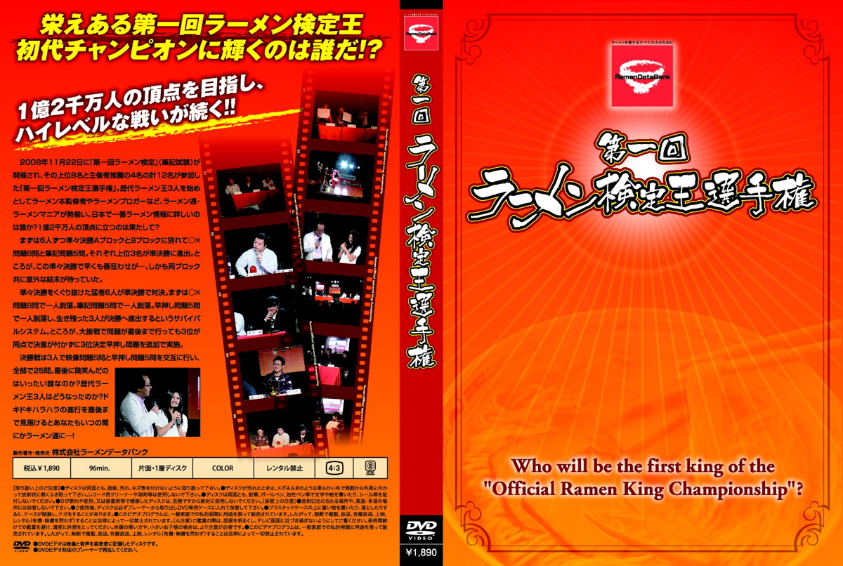 「第一回ラーメン検定王選手権」のDVD、好評発売中!販売は、とらさんBOOKSによる通販、株式会社ラーメンデータバンクでの直販(平日10時〜17時のみ)、「麺屋宗」さんの高田馬場本店及び中目黒店で販売させていただいております。(税込1890円)