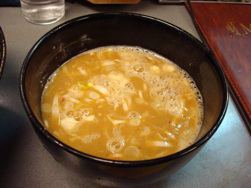 実はこの日、ミュージシャン「クラムボン」のミトさんとの対談があったのです。自分のバンド「クラムボン」以外でも多方面で活躍中のミトさんは、大のラーメン好き。そんなわけで私との対談が実現したというわけ。その対談の前に一杯食べましょう、と「麺屋宗 中目黒店」に来たわけです。話してみるとかな〜りラーメンに詳しいことがわかりました。(^^;