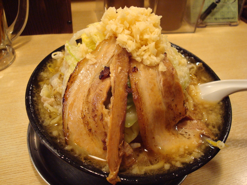 二郎との比較では、いろいろと違うところもあり、「二郎を食べたい人」には不完全燃焼でしょうけど、お店には「二郎の文字」はありませんし、スタッフも二郎を知らないようなので、これはこれで「福岡には珍しいタイプのラーメン」ということでいいのではないでしょうか?そこそこおいしいし。(^^;